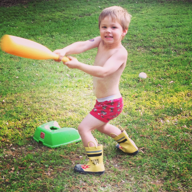 R got brave and wanted to bowl without the helper stand...he wasn't bad! (the ball is on the other side of him, you just can't see it...)