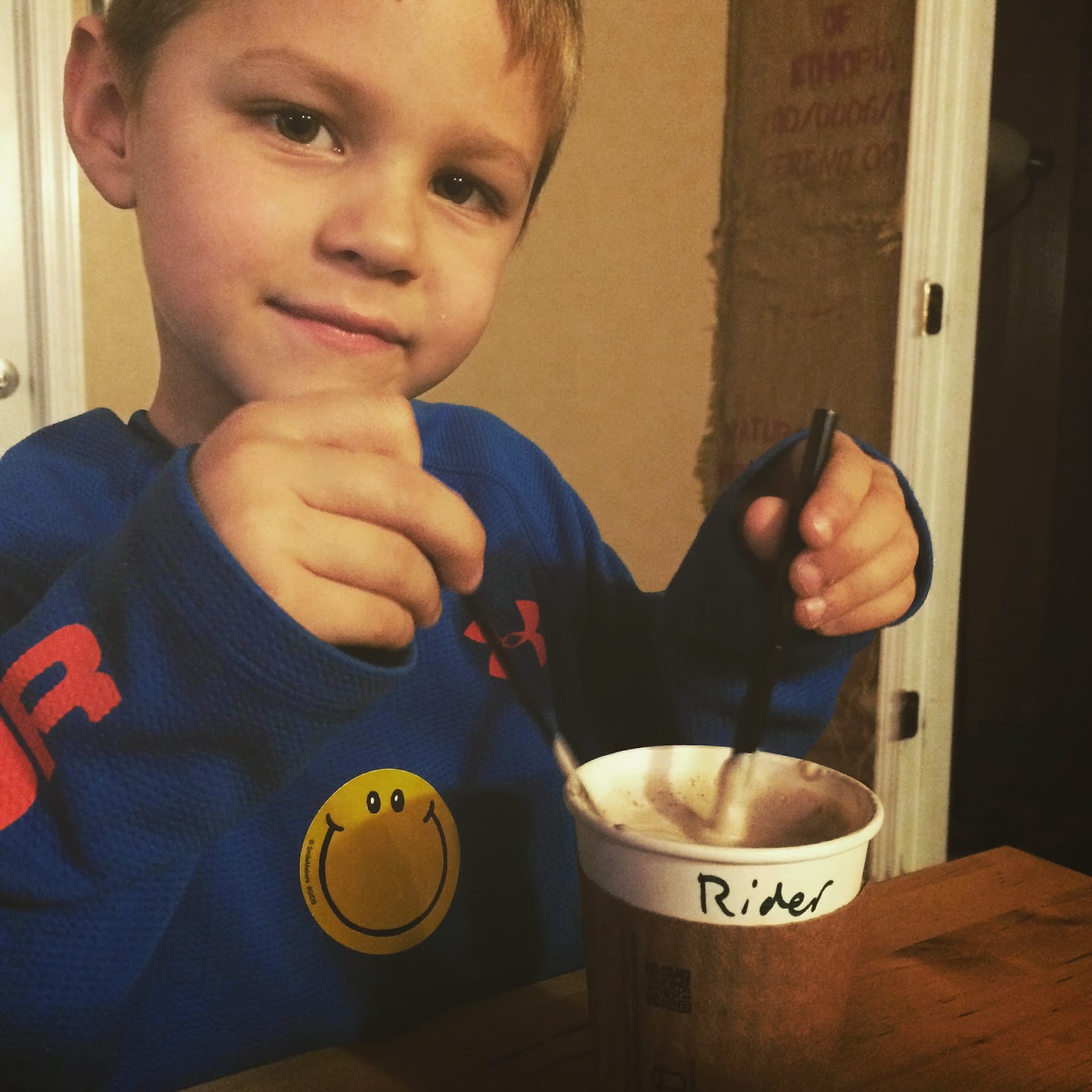 We both slept until about 11 am...because he was up a few more times and it just wasn't a great night's sleep! Even thought it was 11 in the morning...I still needed my cup of coffee! ;) Even though I hate missing school, it's always a good day to spent at home with my baby (even though he wasn't feeling so hott!)